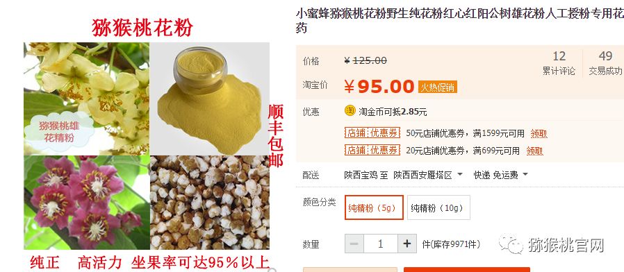 来自淘宝网的猕猴桃花粉价格:50g=95元